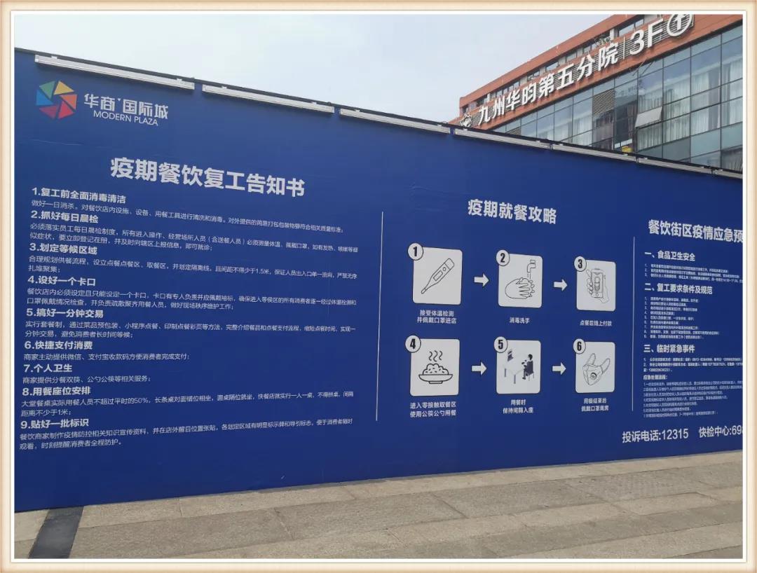 区领导叮嘱餐饮企业要增强信心,创新经营思路、提升服务质量,尽快把疫情造成的损失追回来。保持疫情防控不松懈,按照区防控工作一线指挥部关于开放堂食服务的通告要求,落实好各项防疫措施;进一步规范经营行为,把好食品质量关和安全生产关,为消费者构建一个安全放心的消费环境。