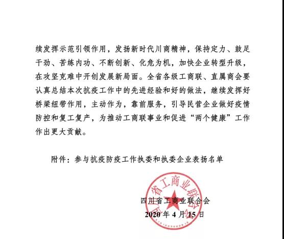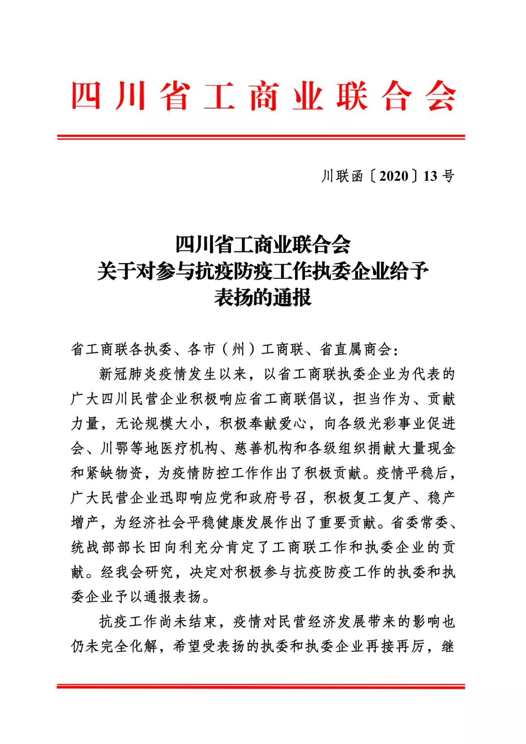 ,四川省工商联通报表扬了一批积极参与抗疫防疫工作的企业家,友华集团榜上有名。