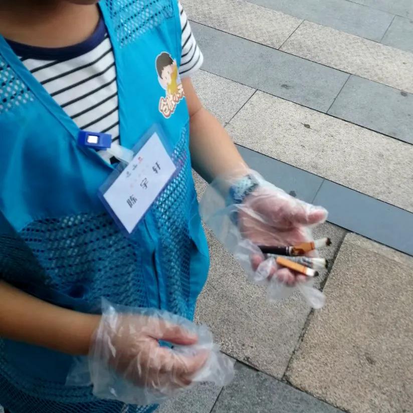 并伸出小手捡拾烟头
