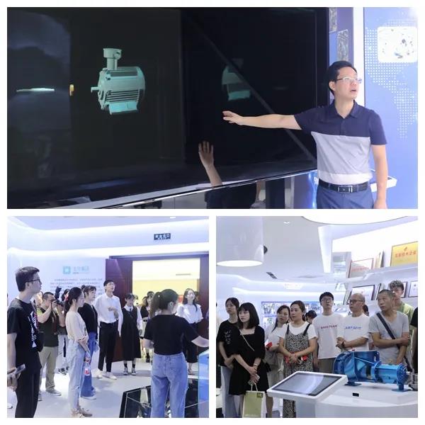 仪式结束后,受助学生和集团职工一同参观了友华集团展厅,通过唐总经理的介绍,大家学习了公司文化,并近距离地观察了各公司的产品设备。