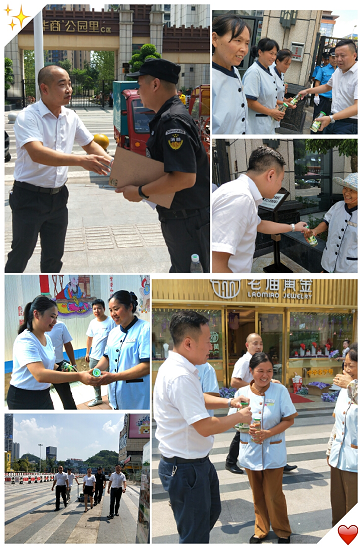 谷浩总经理叮嘱物业一线员工在当前持续高温的条件下,在保证物业服务质量的同时,也要合理安排作息时间,劳逸结合,切实做好防暑降温和安全生产工作,并把消暑品挨个分发给员工。慰问中,工作人员都洋溢着幸福的微笑,大家纷纷表示,一定会坚守好自己的岗位,加倍努力,保障安全,发扬吃苦耐劳的精神,不辜负公司领导的期盼,建设出华商更美好的明天。